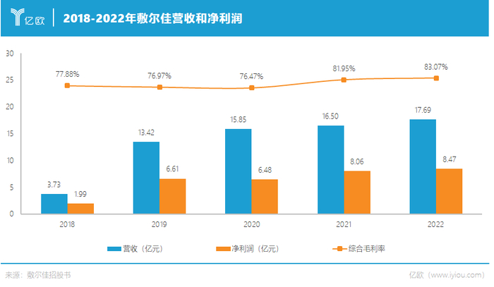 2020-2022年,敷尔佳的毛利率分别达76.47%、81.95%及 83.07%,数字直追茅台,这一赛道的利润可见一斑。然而仅8名研发人员的敷尔佳,能否靠营销在二级市场搏个圆满?