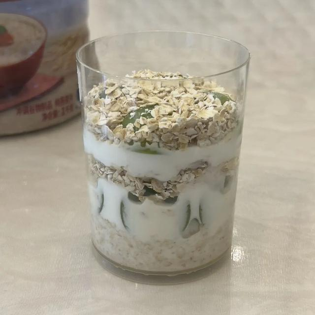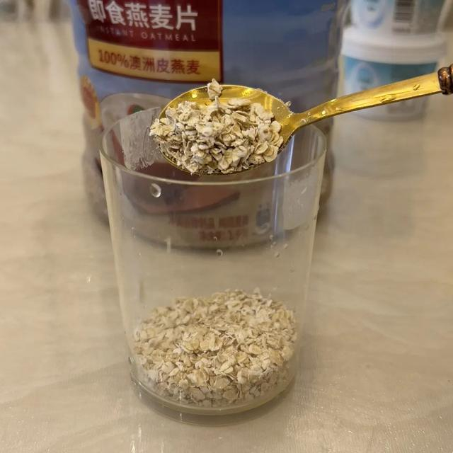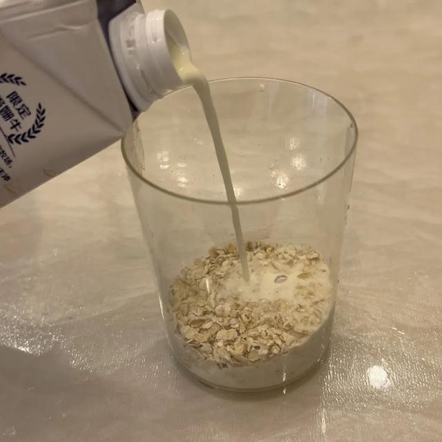 1.将少许燕麦片铺在杯底,加入牛奶浸泡,牛奶量刚好没过燕麦片即可。