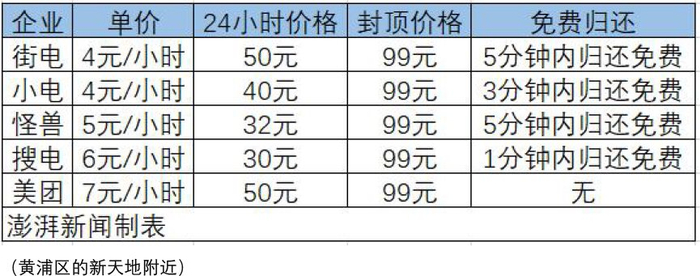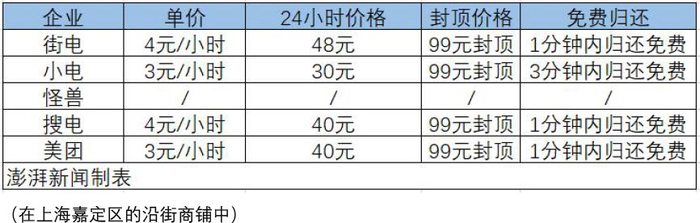 上海的共享充电宝如何收费?澎湃新闻记者对各大品牌的共享充电宝价格做出统计。