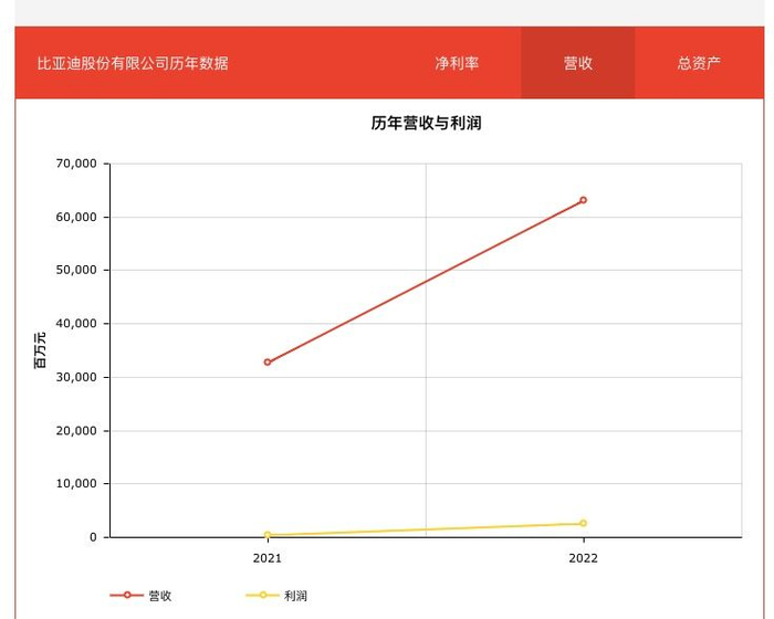 最值得一提的是,比亚迪2022年第一次上榜排到436位,今年跃升至第212名,在今年大部分上榜中国企业名次下降的背景下,进步两百余名。《财富》官网显示 ,其营收也从2021年的327.6亿美元,增至2022年的630.4亿美元,翻了几乎一倍。