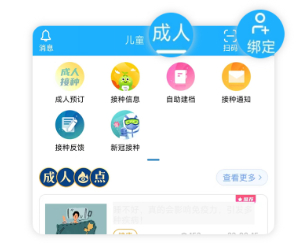 进入首页,顶部切换至【成人】点击【绑定】图标