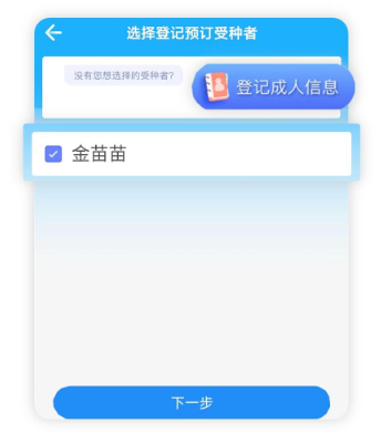 *如列表中无可接种疫苗的受种者,则通过点击【登记成人信息】,添加受种者信息
