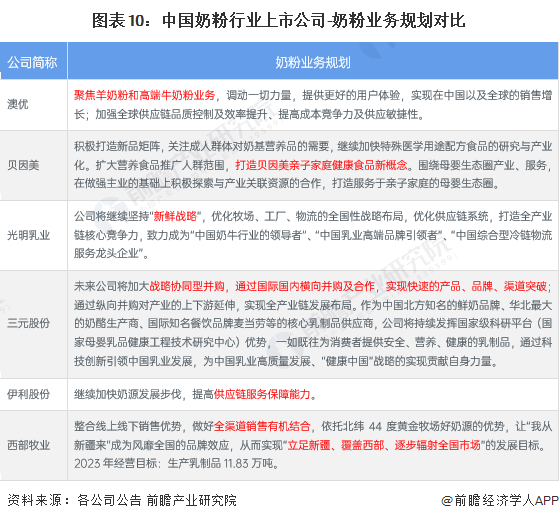 4、奶粉行业上市公司奶粉业务规划对比