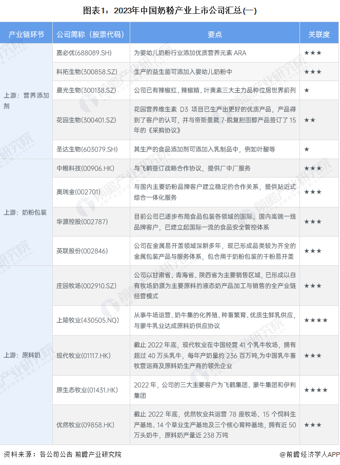 1、奶粉产业上市公司汇总
