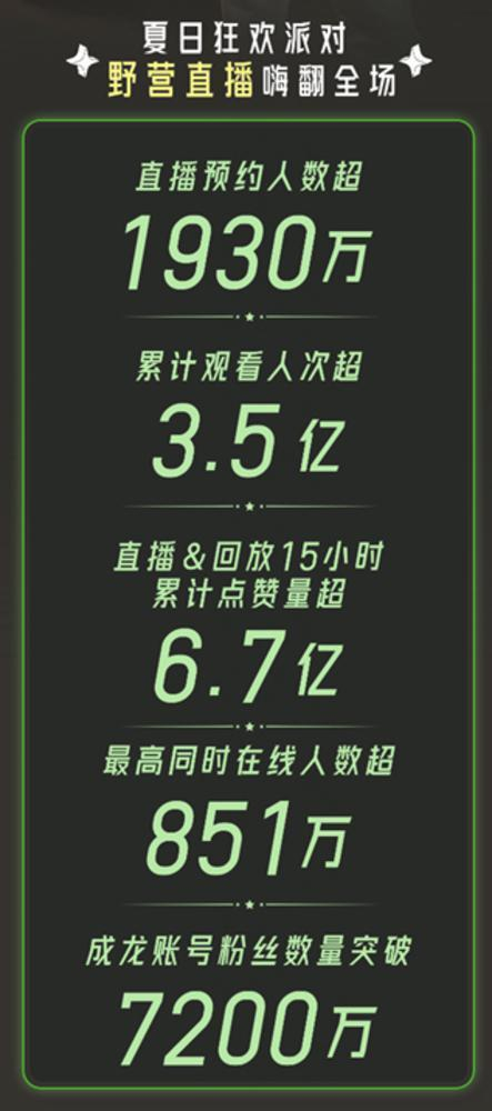 累计观看人次超3.5亿!成龙快手独家直播“夏日狂欢派对”