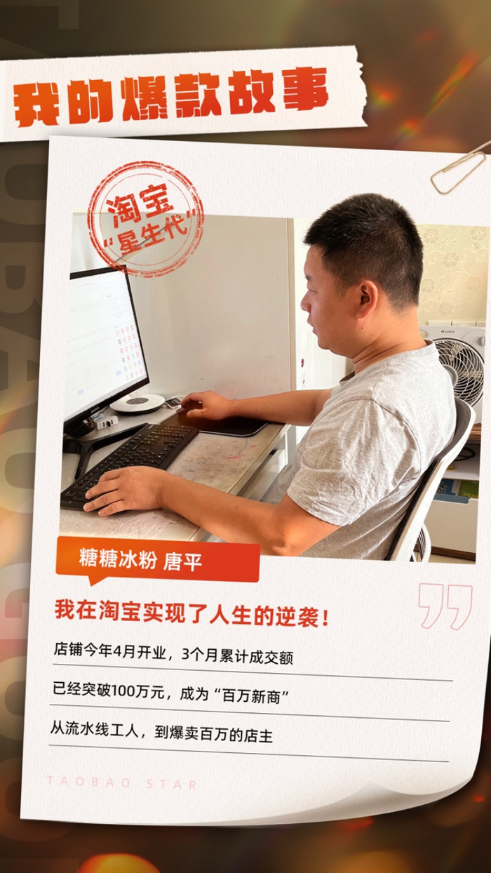 从广州电子厂的流水线工人,到爆卖百万的冰粉原料店主,唐平在淘宝开店短短3个月就实现了人生的逆袭。今年4月,他尝试自己创业,摆了一个冰粉摊赚点小钱,想再开个冰粉原料淘宝店试试,取名叫“糖糖冰粉”。