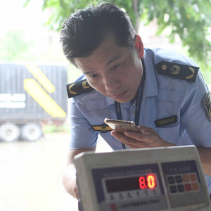 执法人员首先来到粤海商贸物流城的这家“海南纪X废品回收有限公司”,对正在使用的磅秤进行了现场标准砝码测试,并未见明显异常。执法人员发现,这台磅秤显示器背面铭牌的生产商为“启东友XX器有限公司”,显示器为“XK3100称重显示器”,而该磅秤铅封被破坏,且未张贴计量器具检定标识,回收站负责人现场也无法提供出该磅秤的有效检定证书。