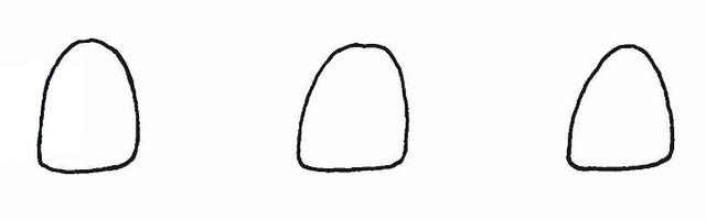牙齿形态比列:前牙形态(牙型)可分为卵圆形、方圆形和尖圆形,与面型、性别、年龄等协调。