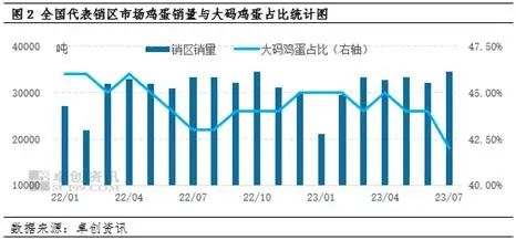 另外,受高温高湿天气影响,蛋鸡产蛋率和蛋重均有所下降,大码鸡蛋供应偏紧。卓创资讯统计数据显示,7月大码鸡蛋平均产量占比42.00%,环比减少2个百分点,供应减少,对鸡蛋价格形成一定支撑作用。
