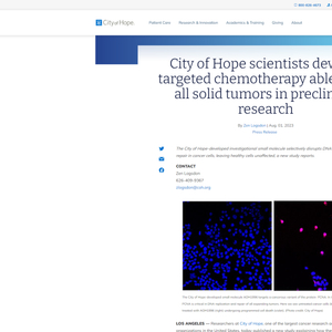 周二,美国癌症治疗和研究机构希望城市(City of Hope)国家医疗中心发布了一则让医药界和媒体圈沸腾的消息——在临床前研究中,该机构宣称其科学家开发出一种能杀死所有实体恶性肿瘤(癌瘤)的靶向化疗药物(AOH1996)。公告所提及的临床前研究,已经以论文的形式发表在《细胞化学生物学》(CELL)期刊上。