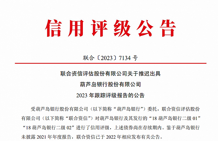 界面新闻记者还留意到,联合资信已经连续两年推迟披露葫芦岛银行的评级报告。