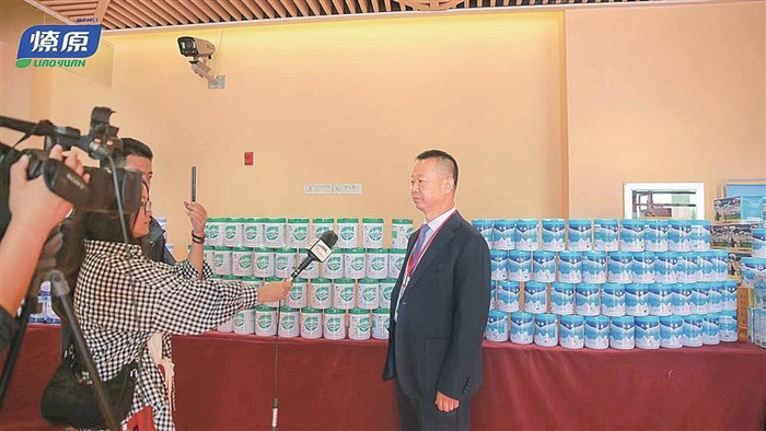 牦牛乳行业企业代表甘肃燎原乳业集团董事长马鹏举接受媒体采访。