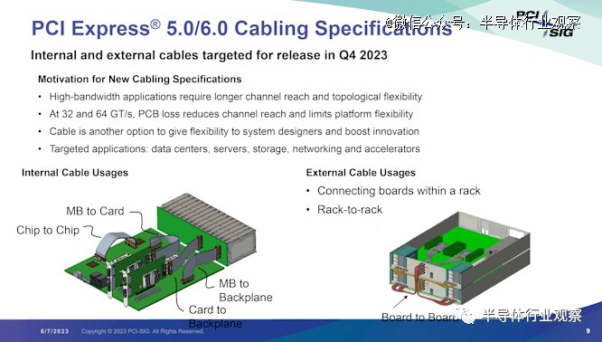 PCIe 5.0/6.0 布线标准仍在今年年底进行工作,提供了使用铜电缆在系统内部(内部)和系统之间(外部)传输 PCIe 的选项。特别是,相对较粗的铜电缆比 PCB 走线具有更少的信号损失,克服了高频通信的直接缺点,即通道覆盖范围短(即信号传播距离短)。虽然布线标准旨在作为 PCIe CEM 连接器的替代品,而不是大规模替代品,但它的存在凸显了铜缆高频信号传输面临的问题,一旦 PCIe 7.0 完成,这个问题只会变得更具挑战性。