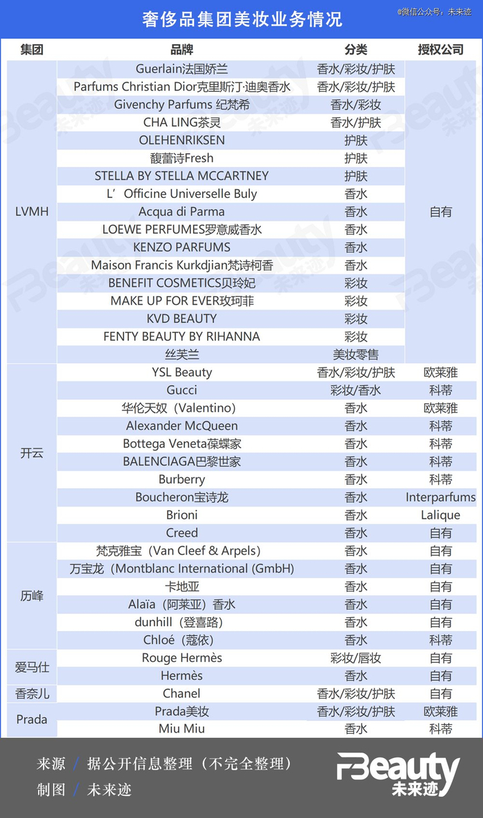 《FBeauty未来迹》整理发现,无论是授权代理还是集团自理,几大奢侈集团已经在美妆业务上开拓出了一片不可忽视的版图。