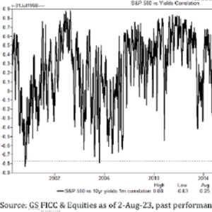 根据高盛周三发布的报告,近期10年期美国国债收益率与标普500指数的一月期相关性在负值区域进一步下探,目前处于近18年来的最低水平,意味着两类资产对冲属性逐渐丧失。