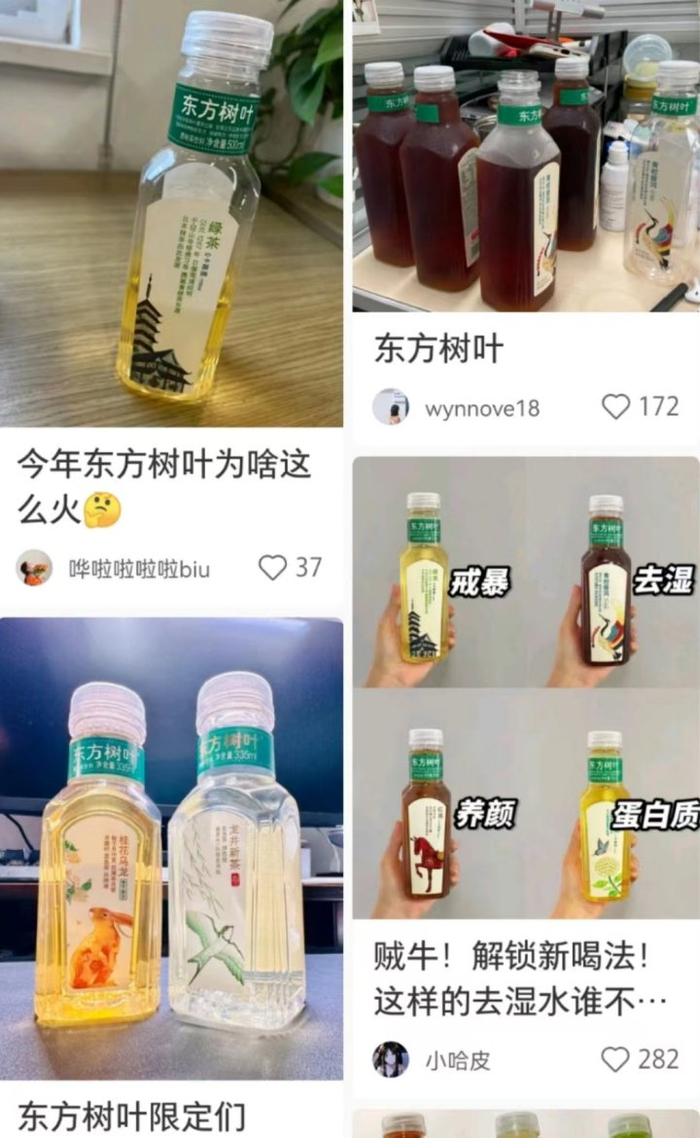 社交平台上,也刮起了“无糖饮料”的旋风,许多人成箱成箱地买,解锁新喝法,甚至抢购隐藏款。有人甚至研制出了“戒暴”“祛湿”“养颜”“掉秤”“蛋白质”等新吃法,其实就是在不同口味的东方树叶中加入蜂蜜、茯苓、牛奶、纤维粉等,热量不超过20大卡。