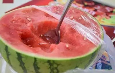 用勺子挖着吃过的西瓜,不仅会引入空气中的微生物,还会通过勺子将我们口腔中的微生物也引入到西瓜上。