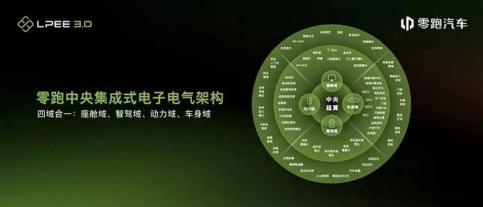7月31日,零跑汽车对外发布全域自研的中央集成式电子电气架构,这套架构命名为「四叶草」,将通过1颗SOC芯片和1颗MCU芯片,实现座舱域、智驾域、动力域和车身域的系统融合,首款搭载该架构的车型预计将于今年9月亮相。