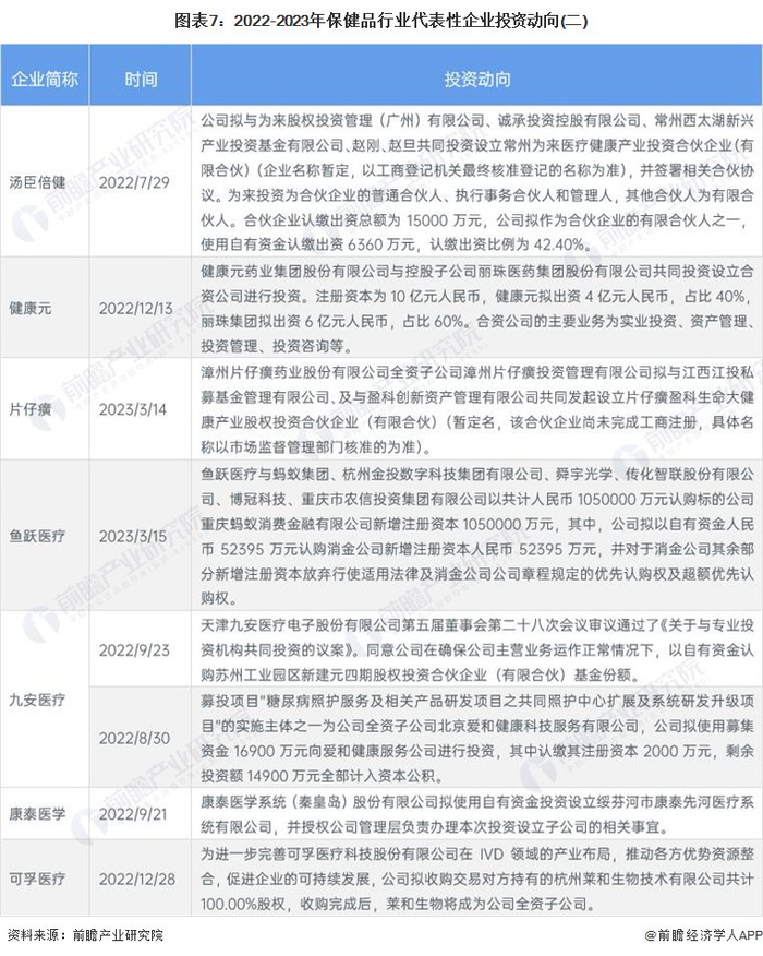 保健品行业代表性企业最新投资布局