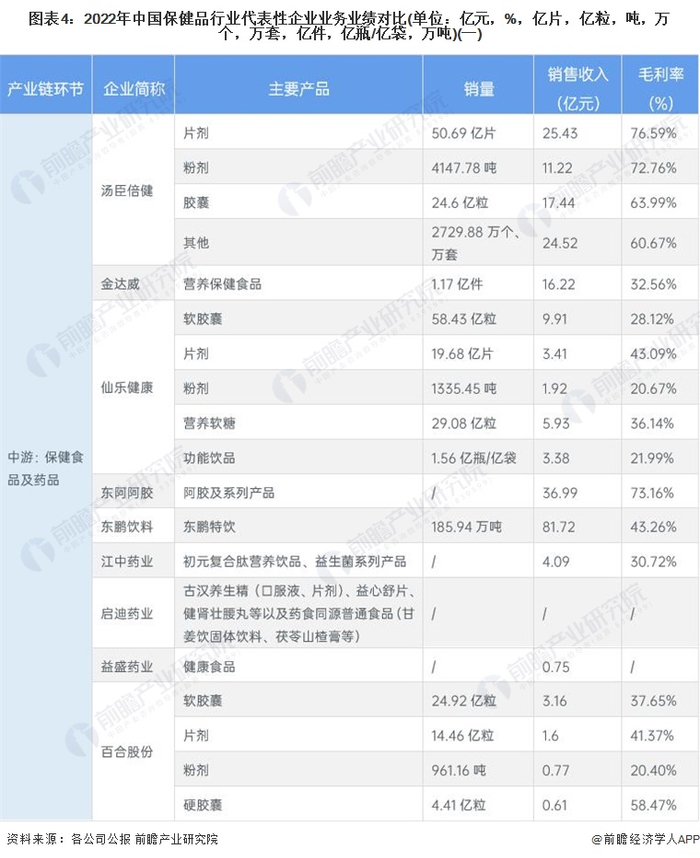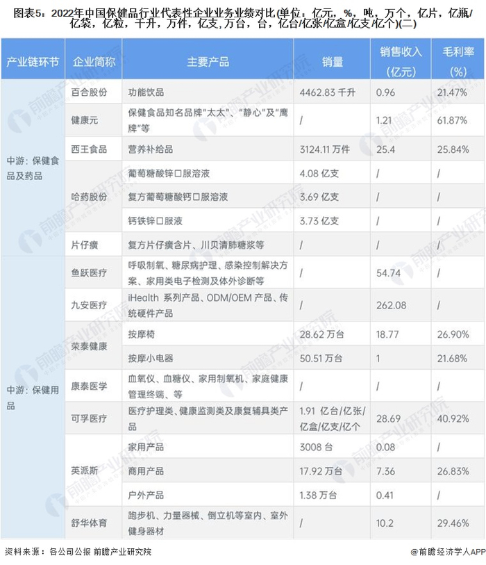 行业主要上市公司:汤臣倍健(300146)、东阿阿胶(000423)、启迪药业(000590)、健康元(600380)、哈药股份(600664)、鱼跃医疗(002223)、西王食品(000639)、片仔癀(600436)、英派斯(002899)等
