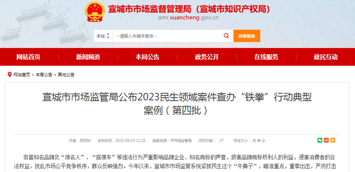 【安徽】宣城市市场监管局公布2023民生领域案件查办“铁拳”行动典型案例(第四批)
