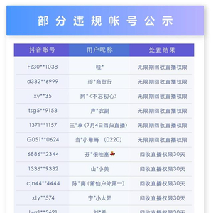 抖音直播公示不良PK治理成果 处罚11余万个账号