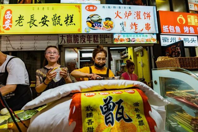 在小上海步行街,方圆数百米内,来自全国的顶流美食连接成了浩浩荡荡的集市规模,还有夜市中来来往往流淌着的人群,让人不由自主地走入其中,想寻找到魔都夜晚别样的魔力。