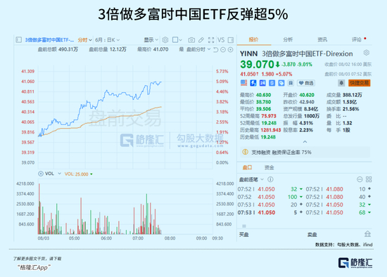 在盘后,美股上市的3被做多富士时间中国ETF,大幅反弹超过5%。