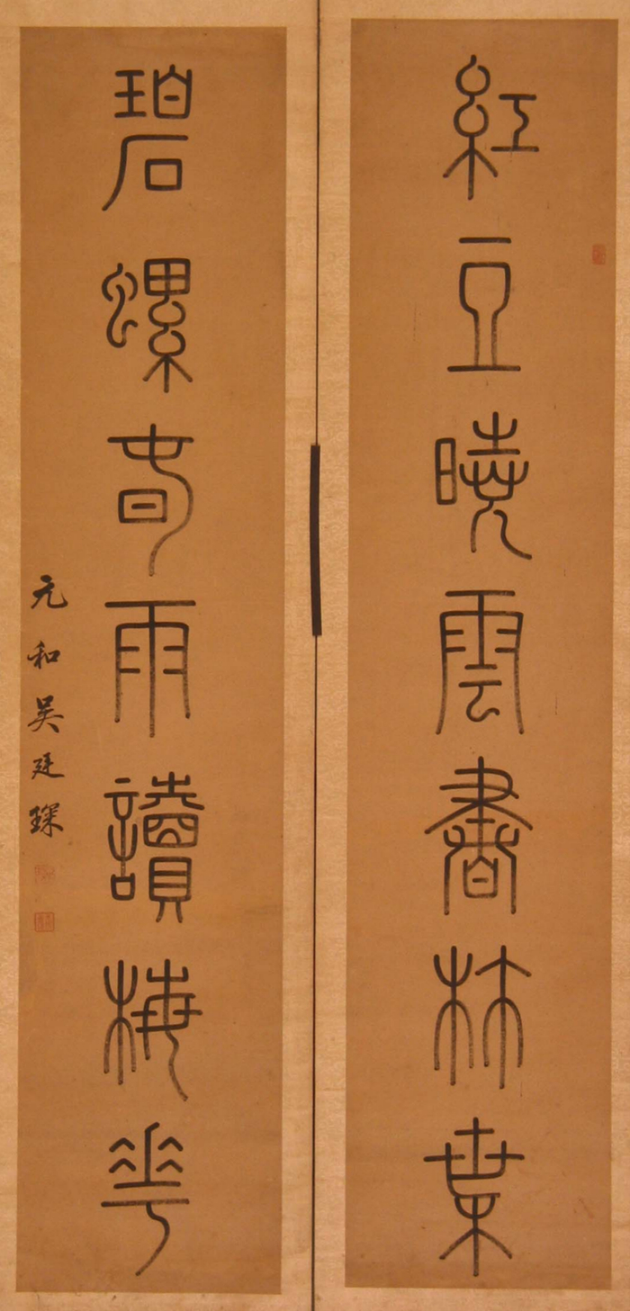 本次展出的书法作品不仅包含王澍、孙星衍、何绍基、吴廷琛等名家篆书对联作品,还包含伊秉绶、翁方纲、赵之谦、阮元等名家隶书对联作品。