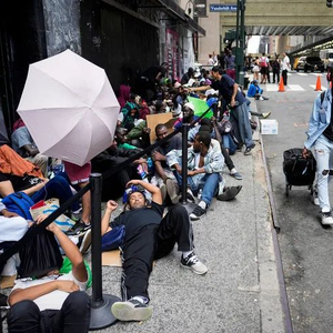 7月31日早晨,在纽约繁华的曼哈顿街头,数十名移民垫着硬纸板、人挤人地睡在罗斯福酒店外的人行道上,他们在这座被改建成收容所的酒店外度过了一夜。这些怀揣“美国梦”的移民在到达美国伊始可能很难收获美梦。