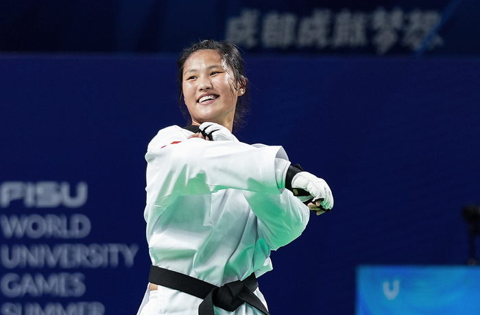 中国体育报成都8月2日电(记者 顾宁)“非常激动,非常兴奋!拿到金牌,证明了自己,非常开心。”赛后说起获胜后的感受,中国选手徐蕾一连用了几个“非常”。8月2日,徐蕾在成都大运会跆拳道女子73公斤以上级的决赛中,以2比0战胜伊朗选手阿纳希塔·塔瓦科利,夺得冠军。