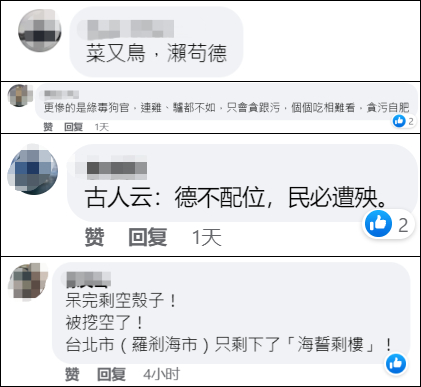 还有人哀叹,民进党上台以来,任命的官员简直都是“马户又鸟”,这些驴和鸡把台湾的经济、政治搞得鸡飞蛋打。