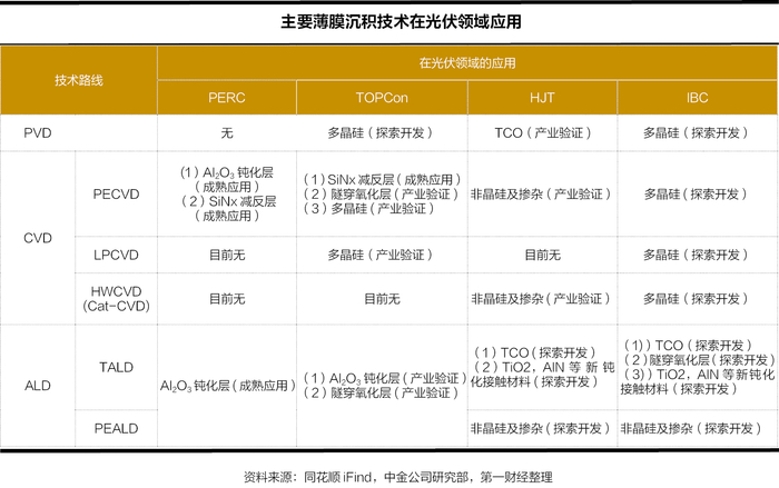 其中,根据多晶硅生长的设备不同,TOPCon以LPCVD和PECVD技术为主。HJT则以HWCVD和PECVD技术为主。