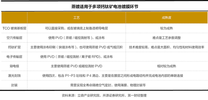 得益于蒸镀在大面积薄膜制备上具有优势,且适用于TCO玻璃基板层、空穴传输层、钙钛矿层等多项镀膜环节,有望成为钙钛矿的主流镀膜技术。