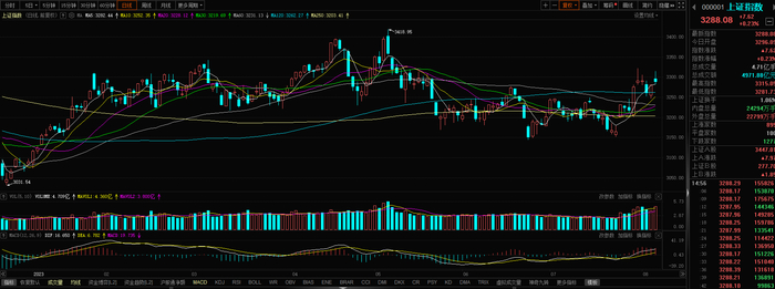 指数方面,三大指数集体高开,沪指冲高3300点关口后震荡回落,午后大金融板块集体发力再度拉高沪指。但大金融板块尾盘出现资金快速兑现拖累股指涨幅震荡收窄,最终三大股指均小幅收高,但沪指仍未能站上3300点。沪深两市今日成交额10492亿,较上个交易日放量2164亿,成交金额重回万亿上方。截至收盘,沪指涨0.23%,深成指涨0.67%,创业板指涨0.95%。