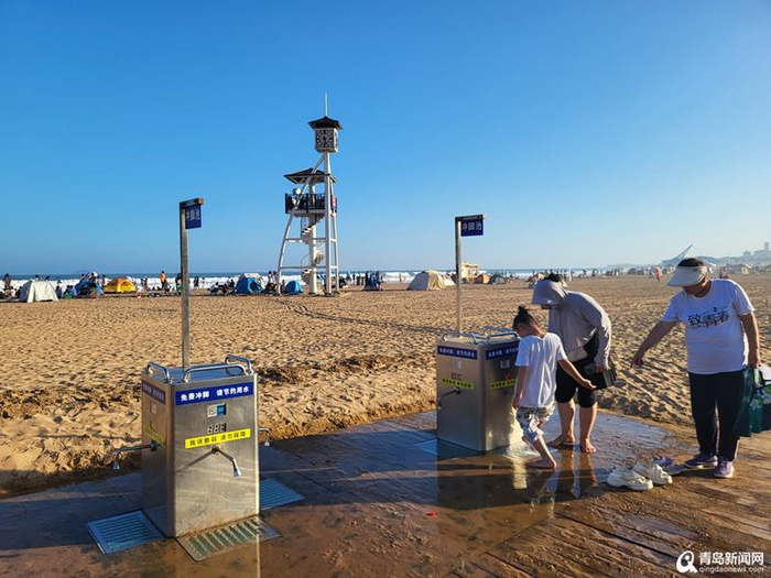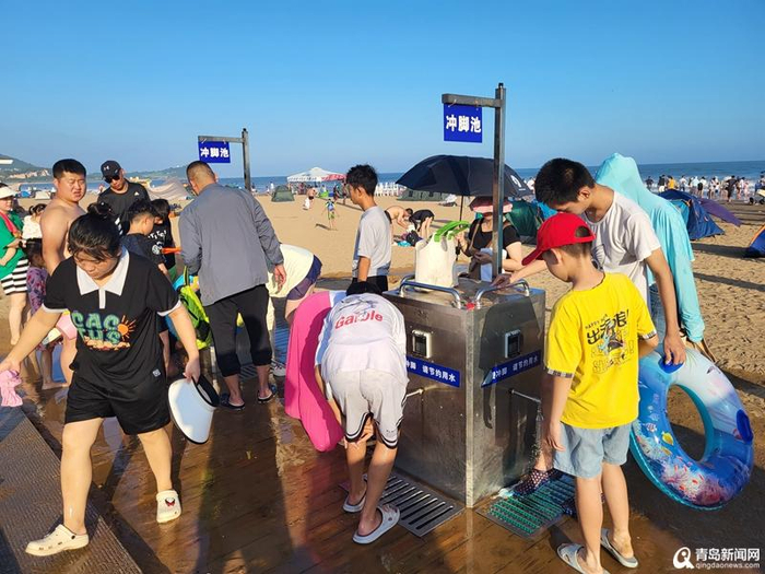 近日,记者在青岛石老人海水浴场探访发现,原来收费的冲脚池目前全部改成了免费冲脚。市民游客在石老人海水浴场游玩嬉水、洗海澡之后,便可以来到冲脚池进行免费冲脚。前来冲脚的男女老少络绎不绝,游客们为这样的便民服务纷纷点赞,直呼“很方便”。