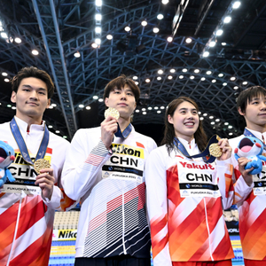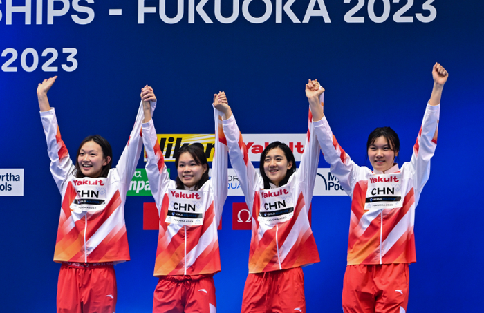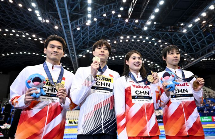 此次中国队首次登上了世锦赛男女4×100米混合泳接力项目的最高领奖台。从2015年世锦赛首次设立这个项目以来,中国队的排名从第四名起步,此前的最好成绩是铜牌。不过这个项目成为东京奥运会新增项目后,随着多名选手的稳步成长,徐嘉余、闫子贝、张雨霏、杨浚瑄曾合作在2020年全国冠军赛上以3分38秒41的成绩打破世界纪录。之后在2021年举行的东京奥运会上,他们携手摘得该项目的银牌,冠军英国队创造了新的世界纪录。这一次在福冈,徐嘉余、覃海洋、张雨霏、程玉洁联手以3分38秒57夺冠。