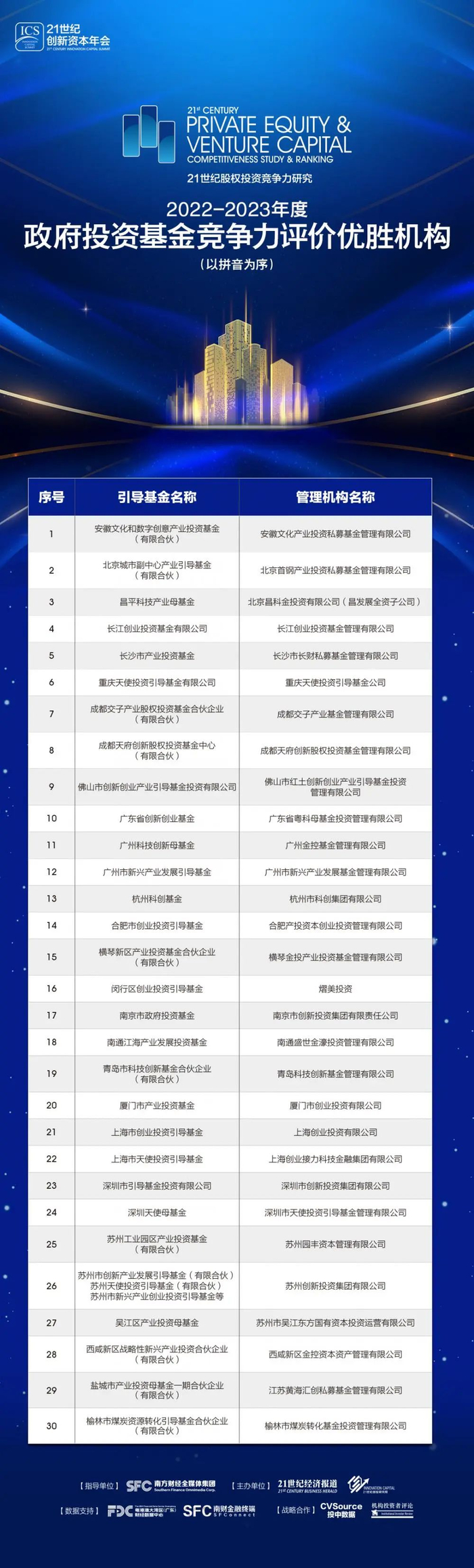 21世纪创投研究院发布《2022-2023年度政府投资基金竞争力评价研究报告》