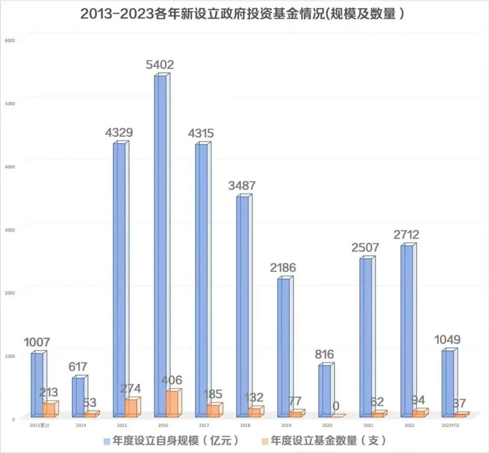 1. 在规模方面,政府投资基金设立数量和规模在2016年前后达到增长高峰期,随后政府投资基金每年的新增设立速度有所回落,逐渐步入稳步增长期。截至2023年7月底,各级政府共设立1568只政府投资基金,自身规模累计约2.84万亿元。