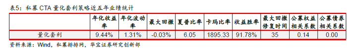 从业绩统计可以看出量化套利策略整体收益非常稳健,在取得9.44%年化收益的同时最大回撤仅0.03%,最大回撤修复时间35天。而且虽然量化套利策略收益特征与债券类似,但是与公募债券类资产的相关性接近0。