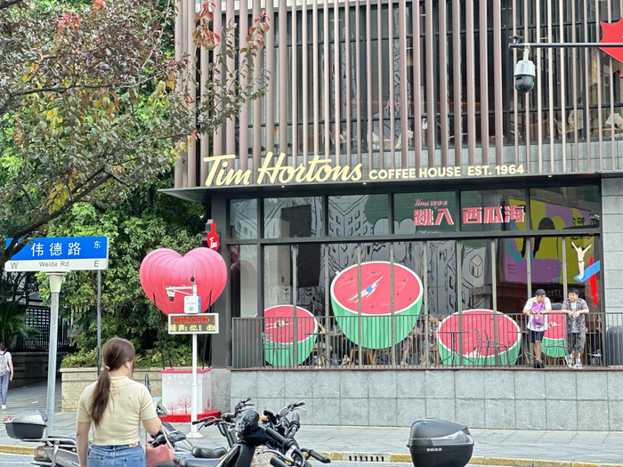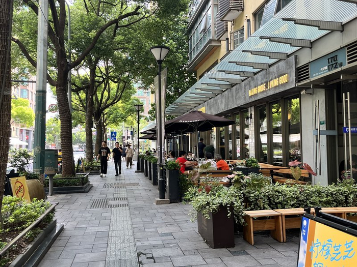 沿街两排外摆位更是将氛围感拉满。不论走到大学路上哪一段,悠闲坐着的人们、冒着香气的小食和咖啡,都比炫目的广告牌更吸引人。