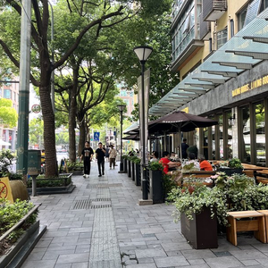 不过,同样不可否认的是,不同街区受各方因素共同作用,往往很难以理论的方式发展。就拿大学路和文汇路来说,大学路只有双车道,周边毛细血管式的辅路、背街丰富,将周边的社区、园区与街区的距离拉近,人的可达性强了,过路客的丰富度自然就高。文汇路的规划则过于疏朗,宽马路、宽步道、林荫面积小,“逛”的舒适度较低,且周边社区与街区的连通性也较差。