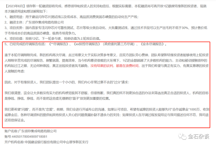 但是该公司提出了一个“过分”请求:我们更希望“闪婚”,而不是先恋爱,因此希望有诚意的投资人先付诚意金“1000万”,然后再配合投资人进行尽调。