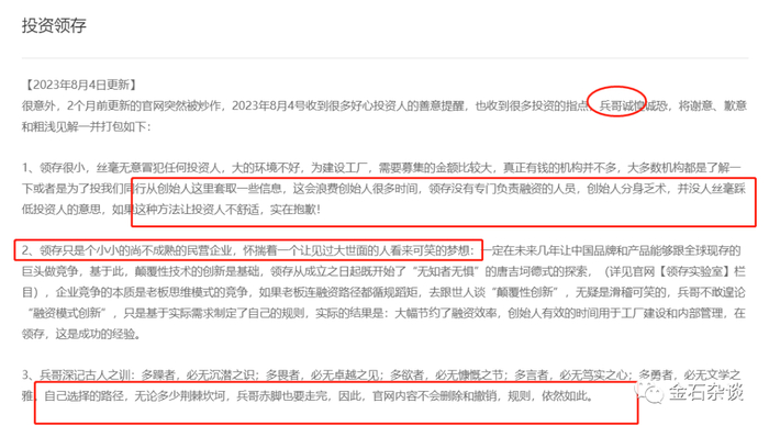 就在这两天,公司创始人楚一兵发布朋友圈,且在官网表示:最近两月既有人善意提醒,也有投资人指指点点,兵哥诚惶诚恐,在表达歉意的同时,再次强调官网内容不会删除和撤销,规则,依然如此。