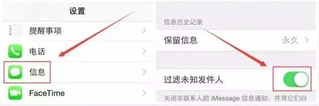 操作步骤:进入苹果手机的【设置】,再点击【信息】,找到【过滤未知发件人】,然后点亮开启这一设置即可。