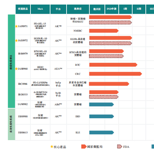 公司已识别并开发9个管线产品,其中6个处于临床阶段,其中3个,即IAP0971、IAE0972及IAH0968被认定为核心产品。公司的核心产品IAH0968是一种抗体依赖性细胞介导的细胞毒性(「ADCC」)增强抗体。公司已就核心产品IAP0971及IAE0972获得国家药监局及美国食品药品监督管理局(「FDA」)对晚期实体瘤患者进行I/II期临床试验的IND批准,并于2023年7月完成I期临床试验。