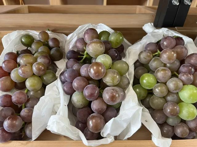 据透露,红富士葡萄在生长过程中相较于其他品种更需仔细照看,定期查看引水和枝叶长势,因此市面上较为少见。在足够的水分和光照下,红富士葡萄口感饱满,嫩滑的果肉中透着淡淡的果香,轻轻一咬就汁水四溢,回味甘美。