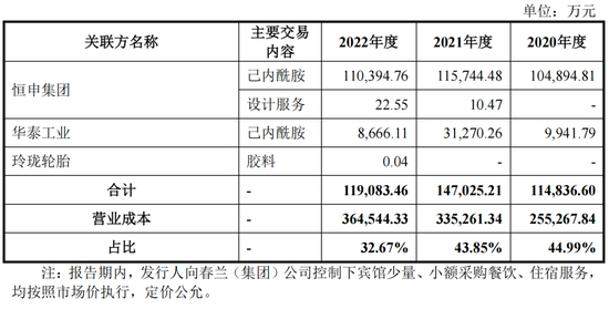尼龙6切片销售收入中,报告期内分别有9899.51万元、3046.27万元、5312.06万元来自其股东恒申集团。而除了销售产品给恒申集团,海阳科技向恒申集团采购己内酰胺/设计服务。报告期内分别发生10.49亿元、11.57亿元、11.04亿元的采购额。