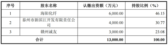 据悉,海阳锦纶于2013年5月由海阳化纤(即海阳有限)出资设立,设立时海阳化纤持有海阳锦纶100%股权,2017年,赣州诚友以货币资金认缴3000万元注册资本,对应持股23.08%。重组发生时,海阳锦纶23.08%股权对应评估值为6930.15万元认购,增加的注册资本1678万元,增资价格为4.13元/股。