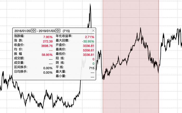 从 2016 年初的底部到 2018 年末的底部,算是几次从底部到底部中最惨淡的一次,年化收益只有微乎其微的 2.71%,不过好歹也算是没亏钱,估计也能跑平余额宝。
